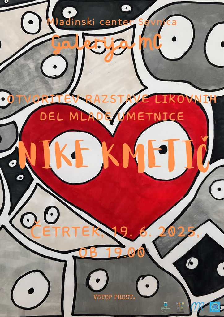 Vabljeni na razstavo likovnih del mlade umetnice Nike Kmetič, 19. 06. 2025 ob 19.00 v Mladinski center Sevnica.