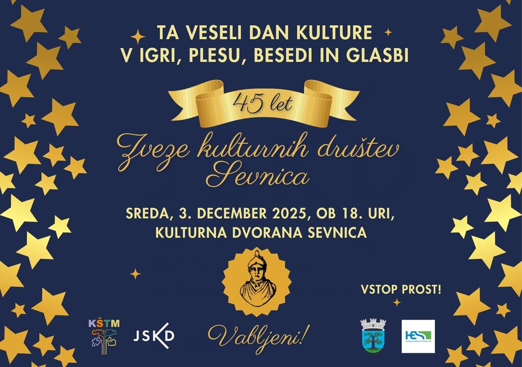Vabimo vas na praznično kulturno doživetje, kjer bomo skupaj obeležili bogato ustvarjalnost sevniškega prostora. Na odru se nam bodo predstavili izjemni domači ustvarjalci, ki s svojim delom že vrsto let plemenitijo kulturni utrip našega kraja.
