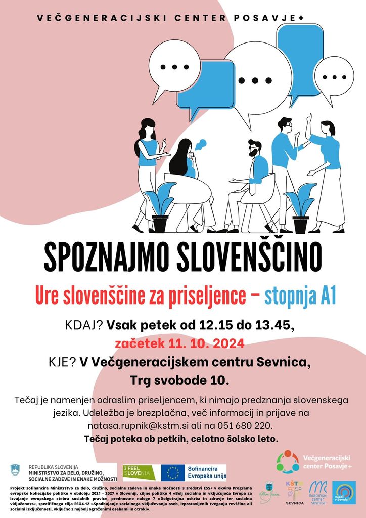 Vabljeni na brezplačni tečaj slovenščine za priseljence v Večgeneracijski center Posavje+, enota Sevnica.