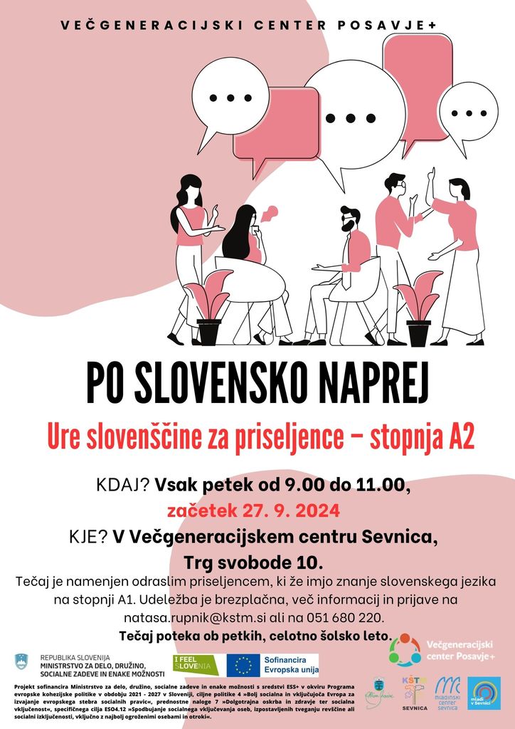 Vabljeni na brezplačni tečaj slovenščine za priseljence v Večgeneracijski center Posavje+, enota Sevnica.