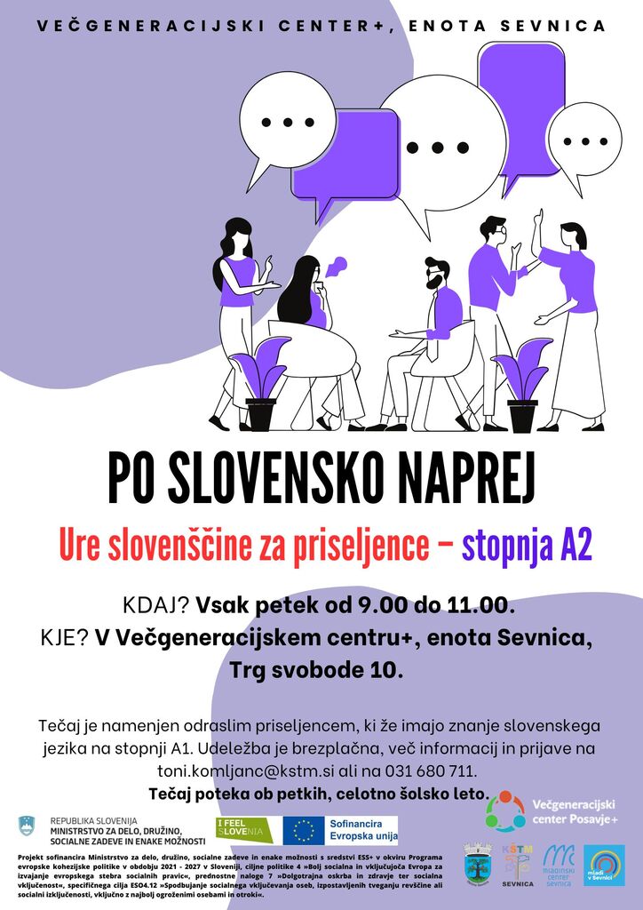 Tečaj je namenjen odraslim priseljencem, ki že imajo znanje slovenskega jezika na stopnji A1.