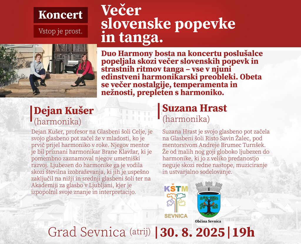 Večer slovenske popevke in tanga v atriju gradu Sevnica