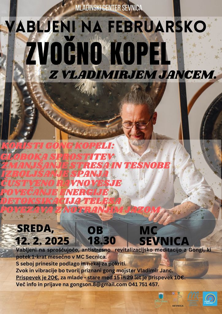 Vabljeni na zvočno kopel z Vladimirjem Jancem, na kateri se boste sprostili po napornem dnevu.