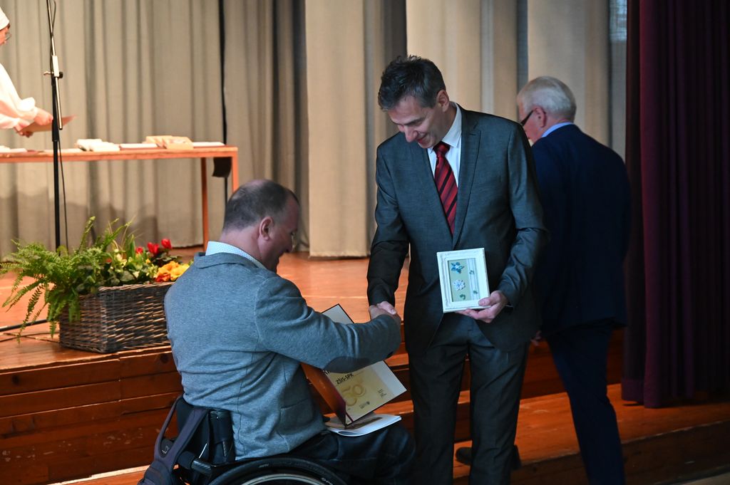 Za prizadevno in uspešno delo pri uresničevanju in izvajanju pravic invalidov ter razvoju in krepitvi medsebojnih humanih odnosov je Peter Bršek v imenu Zveze delovnih invalidov Slovenije ob 50. obletnici delovanja Društvu invalidov Sevnica podelil priznanje, posebno priznanje Zveze delovnih invalidov Slovenije pa je kot predsednik Društva invalidov Sevnica prejel Franc Boljte.