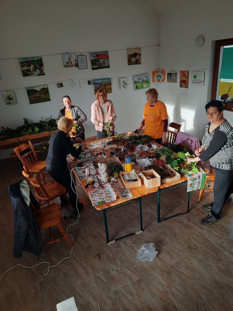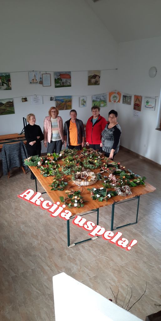 Skupina članic redno obiskuje in seveda izvaja telovadbo večkrat na teden pred domom krajanov. Tokrat so v petek, 25. novembra, podaljšale telovadbo za dejavnost, ki je do zdaj v društvu še niso izvajale, je pa povsem primerna za ta čas. Spretne roke so izdelovale adventne venčke, si izmenjevale in dopolnjevale spretnosti ustvarjanja in nastali so lepi unikatni izdelki. Akcija je potekala v sproščenem okolju doma krajanov, ob tem pa so se članice prijetno družile.