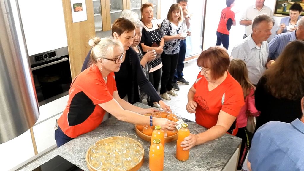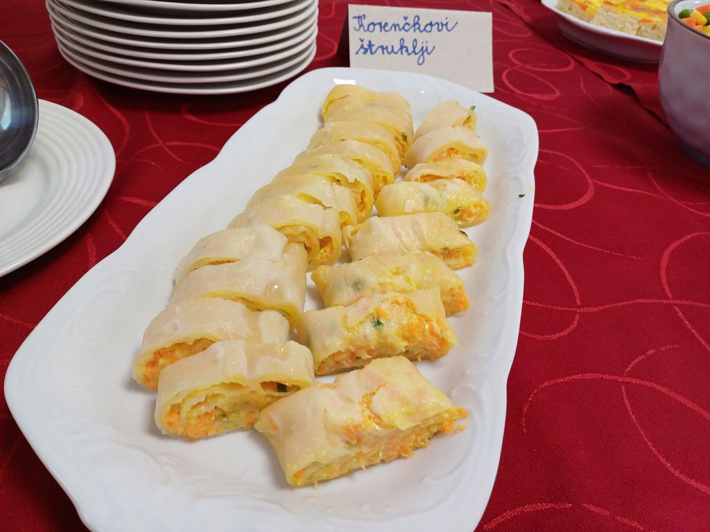 Že nekaj ur pred uradnim odprtjem so članice že kuhale in pekle nekatere jedi, da so bile še vroče in sveže pripravljene. Skozi priprta vrata je prav lepo dišalo iz kuhinje in z omamnim vonjem že vabilo prve jutranje obiskovalce. Predsednica Fani Borštnar jih je pozdravila za dobrodošlico, na kratko predstavila korenčkove jedi in jim zaželela slasten tek. Obiskovalci so bili nad raznolikostjo korenčkovih jedi navdušeni, saj je korenje največkrat le dodatek v govejih juhah,obarah ali enolončnicah. Tokrat pa so lahko poskusili kar šestnajst različnih jedi iz korenja: kremno juho,štruklje, namaz, pogačo, tortico, piškote, korenčkovo potico, štrukeljčke in rulade, mafine, korenčkov kruh,solato, itd. Otrokom je šla najbolj v slast sprotna peka korenčkovih palačink, ki so jih namazali s korenčkovo marmelado. Za najmlajše smo pripravile domači frutek, za žejo pa natočile še korenčkov sok z jabolki. V kuhinjo in na pokušino je prišla med drugim predsednica Društva kmetic Sevnica Majda Jazbec in nam čestitala za domiselnost in izvirnost ter za okusne in lepo pripravljene jedi. Zaželela nam je dobro in uspešno delo tudi v bodoče. S svojim obiskom nas je počastil tudi podžupan Občine Sevnica Janez Kukec, ki je bil prav tako navdušen nad izbiro korenčkovih jedi in se zahvalil za ves trud in vnemo, ki jo delimo tudi s krajani in občani. Dogodek »Dan odprtih vrat« postaja že tradicionalen, zato že razmišljamo katere slastne jedi bodo v naslednjem letu znova zadišale iz naše kuhinje.