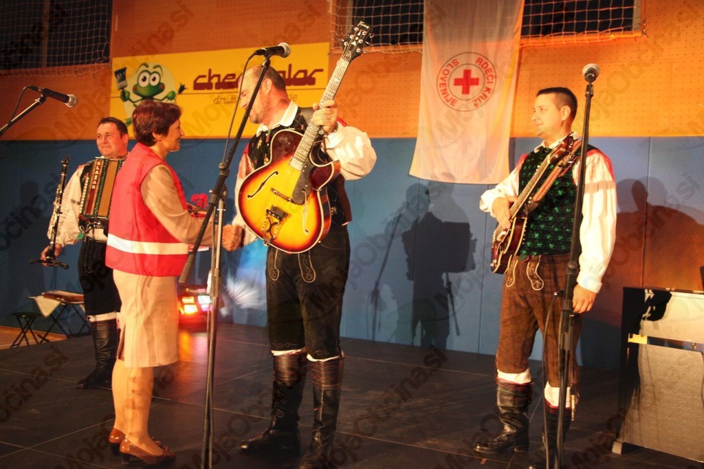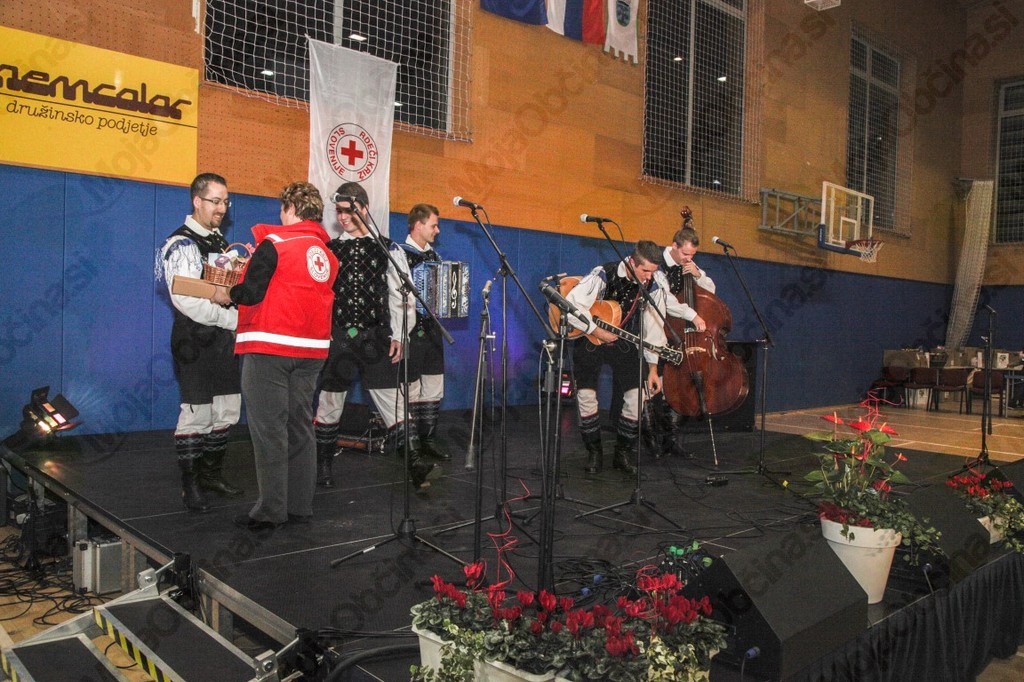 Območno združenje RK Sevnica je pripravilo že tretji dobrodelni koncert z namenom zbiranja sredstev za nakup paketov pomoči za občane in družine iz občine Sevnica. Lani je bila kulturna dvorana premajhna, zato je bil letošnji koncert v Športnem domu Sevnica. V večeru raznovrstne glasbe so sodelovali D'Palinka band, Tine Bec, Andrej Lisec, Ljudske pevke s Telč, Tercet družine Galič, Marijan in Majda Petan, Vili Resnik, Ansambel Skomini, Skupina Rosa inr Ansambel Dolinarji. Z ubrano besedo sta večer sproščeno vodila Tanja Žibert in Ciril Dolinšek. Zbrane so pozdravili predsednica RK Sevnica Breda Drenek Sotošek, župan Srečko Ocvirk, direktorica KŠTM Mojca Pernovšek, na koncu pa je sekretarka Mojca Pinterič Krajnc zbrane seznanila z izkupičkom letošnjega projekta. Z vstopnino, finančnimi donacijami in prodanimi 342 srečkami je bilo zbrano 6734 EUR, kar bo zadostovalo na nakup 500 kompletov pomoči, sestavljenih iz paketa z živili, pralnega praška in toaletnega kompleta. Na seznamu prejemnikov RK je 833 oseb, skupaj z njihovimi družinskimi člani pa je to 1500 občanov, ki jim RK pomaga. Predstavnici RK sta poudarili dobro sodelovanje z občino, ki ima posluh za pomoči potrebne, in zavodom KŠTM, ki jim je ponudil močno organizacijsko podporo. Vsakemu izmed nastopajočih se je za sodelovanje s košarico domačih dobrot in županovim vinom zahvalil eden izmed prostovoljcev RK iz različnih krajevnih organizacij, ki so tudi sicer vložili veliko truda v pridobitev skoraj 400 dobitkov od 120 podjetij in obrtnikov, ki so kljub težki gospodarski situaciji pokazali veliko razumevanja in dobrodelnost. Na koncu so pohvalili tudi občinstvo, ki je ves čas koncerta lepo sodelovalo. V dvorani je bilo mogoče ves čas občutiti izjemno povezanost in pozitivno naravnanost ljudi dobre volje in odprtega srca.