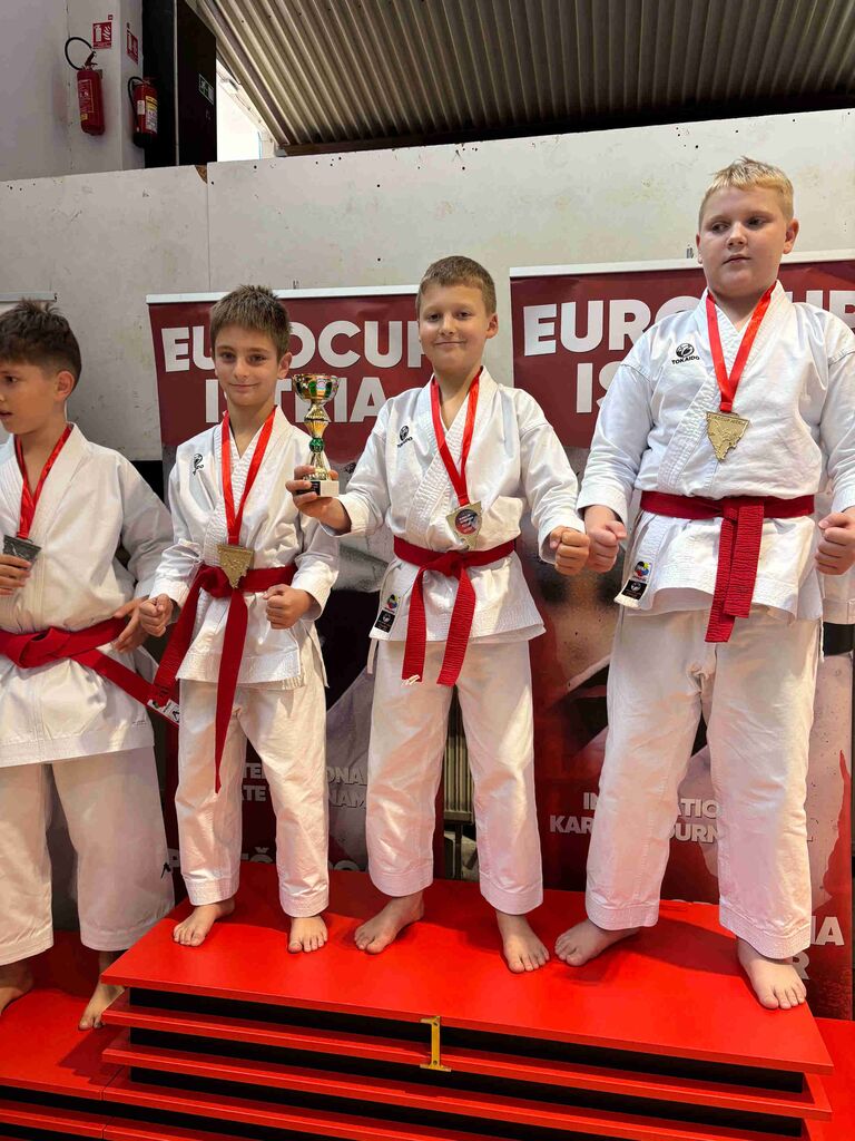 Mladi karateisti KBV Sevnica so na mednarodnem turnirju Eurocup Istria 2025 v Poreču dosegli izjemen uspeh. Med 435 tekmovalci iz šestih držav so prvič nastopili v Shotokan katah, ki jih zaradi WKF pravil trenirajo šele kratek čas. Pod vodstvom trenerja Jurija Orača so pokazali izjemen napredek: Žiga Božič je osvojil srebrno medaljo, David Jamšek se je uvrstil v repasaž, Miha Kozinc pa je kljub porazu prikazal pogumno izvedbo. Vrhunec dneva je bila ekipna zmaga, s katero so Žiga, Miha in David osvojili pokal Eurocup Istria. V klubu poudarjamo, da ostajajo Kyokushin kate in fullcontact borbe naša glavna smer, Shotokan pa je le dodatek za nastope na WKF tekmovanjih. Prepričani smo, da bomo o naših mladih borcih v prihodnje še veliko slišali. Zahvala za podporo gre Občini Sevnica ter pokroviteljem kluba.