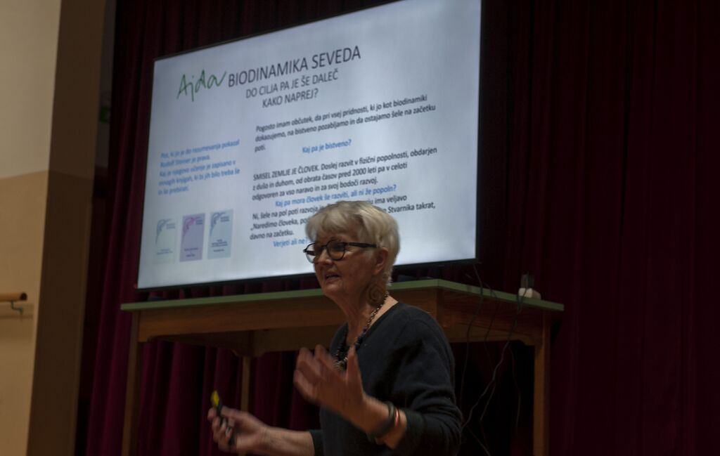 Sledilo je predavanje ge. Mete Vrhunc, začetnice biodinamične metode v Sloveniji. Poudarila je, da je v današnjem času človek odgovoren za Zemljo.