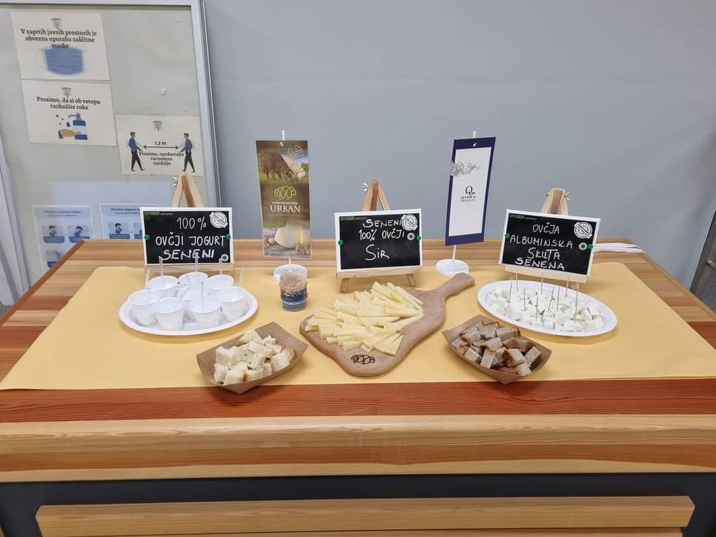 Maja je potekala pokušina okusnih in zdravih senenih ovčjih izdelkov: sirov, jogurtov in albuminske skute, vse pridelano na Ovčarski kmetiji Urban iz Gabrijel. Vse te in preostale izdelke lahko kupite vsako prvo soboto na Kmečki tržnici v Sevnici, njihova pestra ponudba je na ogled na spletni strani: https://ovcarska-kmetija-urban.business.site/.