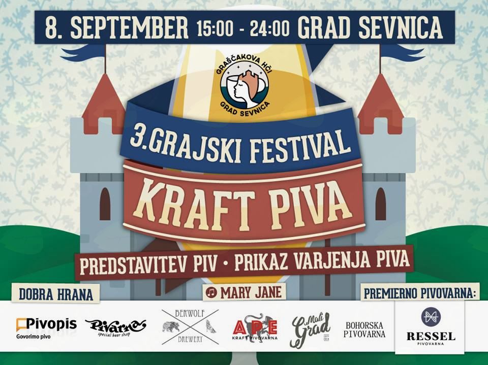 V petek, 8. septembra, Kavarna Graščakova hči organizira 3. grajski festival kraft piva. Festival bo potekal v atriju gradu Sevnica, v primeru slabega vremena pa na gradu v dvorani Alberta Felicijana. Pričel se bo ob 15 uri in bo trajal vse do 24 ure.