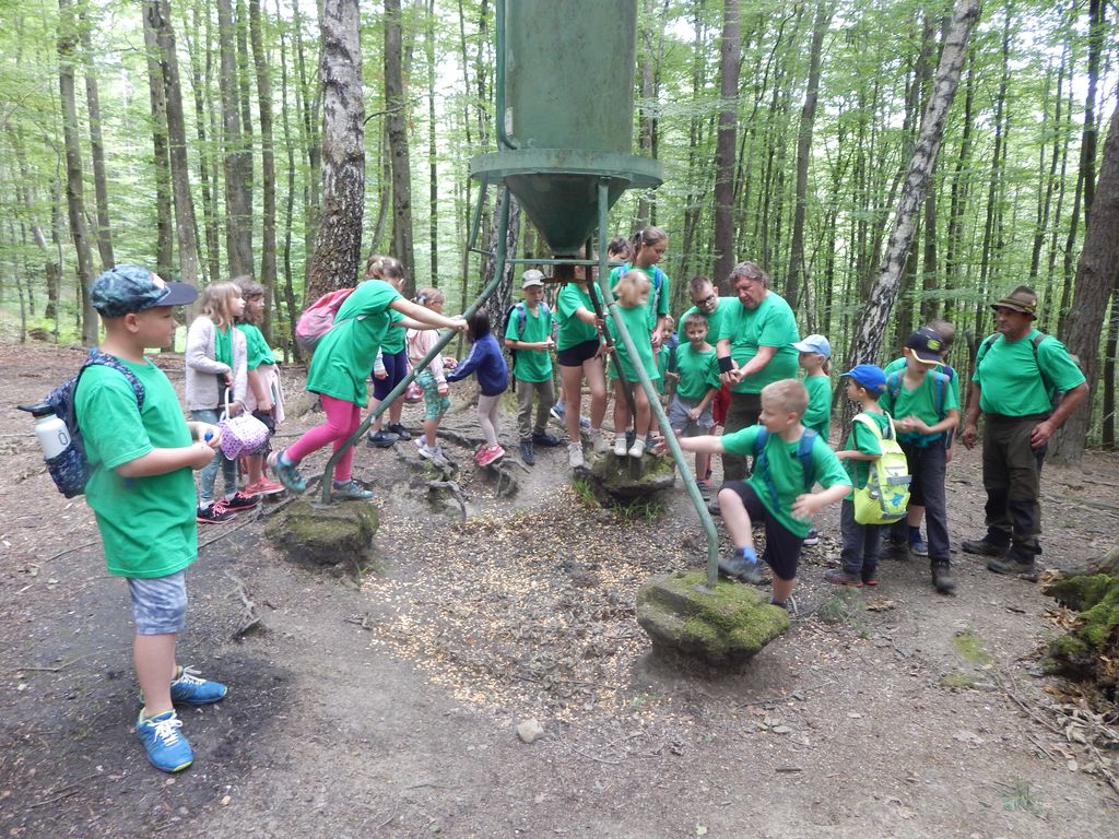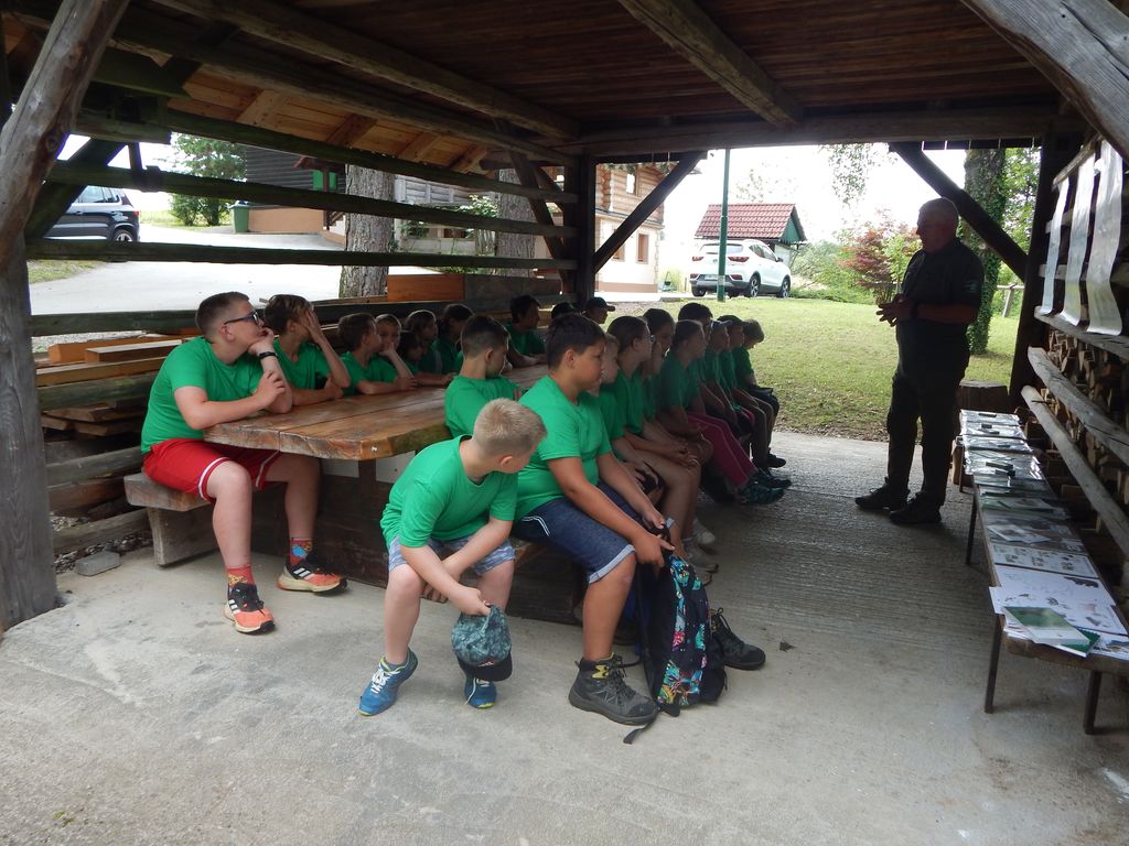 Noge so bile ob koncu sprehoda že pošteno utrujene, grla suha in želodčki prazni. A do kosila smo skupaj v notranjosti lovskega doma izvedli še seznanitev z velikimi zvermi v Sloveniji, s poudarkom na rjavem medvedu, ki je čedalje pogostejši in nič več prehodni obiskovalec našega kraja in lovišča Boštanj. Marko je kot strokovnjak za to področje otrokom poleg tekstovnega in slikovnega gradiva pokazal tudi prave lobanje medveda in volka ter njihove odlitke sledi, ki so otroke navdušile.