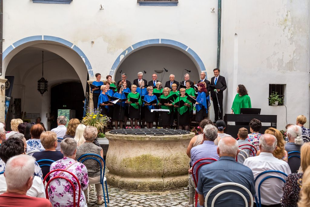 skupnim prepevanjem nadaljevali druženje v prijetnem grajskem okolju.