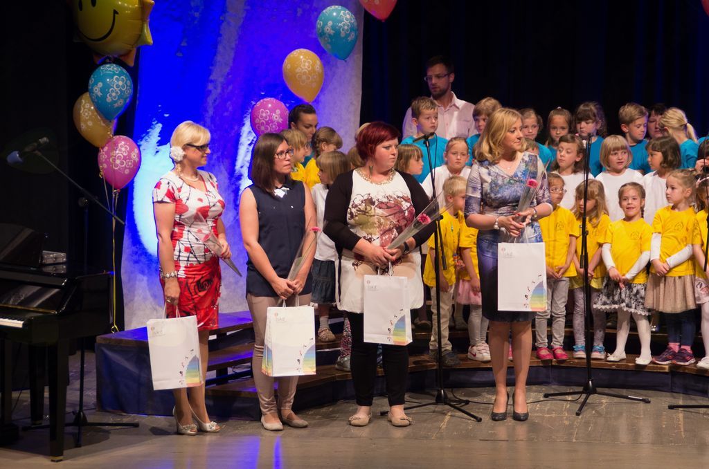 S skupno pesmijo se je v zaključku srečanja poveselilo na odru vseh 150 nastopajočih najmlajših pevk in pevcev. Skupno pesem Naša četica koraka, je vodila zborovodkinja Tadeja Udovč, ob klavirski spremljavi pianista Dejana Jakšiča.