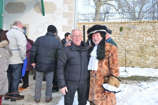 V organizaciji KŠTM Sevnica je tako po godu Sv. Vincenca, ki goduje 22. januarja, ko se po starih običajih lahko začnejo opravila v vinogradu, potekala že 6. tradicionalna grajska rezatev, ki je kljub hladnemu vremenu privabila lepo število botrc in botrov ter ostalih podpornikov. Že ob prihodu na grad je vse prihajajoče v grajski opravi pozdravil in k vinogradu usmeril vitez Marjan iz društva Sevniški graščaki. Veselo vzdušje so s poskočnimi vižami ustvarjali mladi fantje iz KŠD Lukovec, z aperitivom in medenjaki pa je vse zbrane ob grajski vili nad vinogradom postregel predsednik Čebelarskega društva Sevnica g. Franc Zagorc. Župan Občine Sevnica g. Srečko Ocvirk je v uvodnem nagovoru vsem zaželel dobrodošlico in prijetno počutje, obenem pa nas povabil ne samo na grajsko trgatev v jeseni, temveč še prej na uradno odprtje obnovljene okolice gradu, ki bo spomladi v mesecu maju. Zbrane je pozdravila tudi direktorica KŠTM Sevnica ga. Mojca Pernovšek. Poleg dobrodošlice in zahvale vsem podpornikom (botrom, sponzorjem, donatorjem) je opisala tudi številne aktivnosti, ki jih KŠTM Sevnica izvaja v povezavi z modro frankinjo, to še vedno premalo prepoznavno in izkoriščeno vinsko sorto. V programu, ki ga je kot običajno spretno in hudomušno povezoval Ciril Dolinšek - Cili, so nastopili tudi pevci iz vinogradniškega zbora Društva vinogradnikov Malkovec. Pevci, ki skupaj nastopajo zgolj mesec dni, so dokazali, da pojejo z dušo. Prejeli so glasen aplavz, zato bo zagotovo njihova pesem še mnogokrat slišana na raznih dogodkih. Seveda na rezatvi ni manjkal niti nekdanji lastnik Gradu Sevnica, baron Inocenc Moscon, ki je vse oznanil s presenetljivo novico, da bomo (potem ko smo ga ob jesenski trgatvi v grajski vili "zmotili" z njegovo spremljevalko) poleti "zibali". Zato je pohvalil g. župana, da v preteklem letu odprl mošnjiček in uredil okolico gradu z urejenimi pešpotmi, da se bosta lahko s spremljevalko z vozičkom sprehajala s svojim naraščajem...