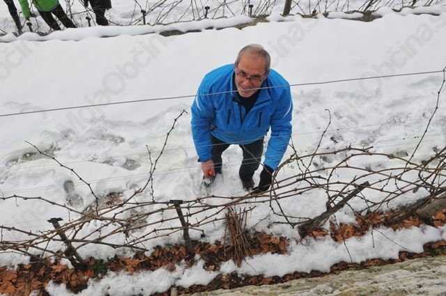 Ko smo po skorajda pomladnih tednih (končno) občutili pravo zimo, ki nas je prvič letos obdarila z belo snežno odejo in temperaturami krepko pod ničlo, smo se tudi na Gradu Sevnica v grajskem vinogradu lotili prvega letošnjega vinogradniškega opravila - rezatve grajskih trt modre frankinje.