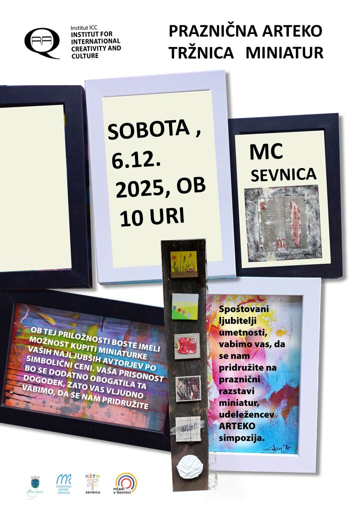 V Galeriji MC Sevnica, je 6. decembra 2025, že drugič zapored potekala praznična Arteko Tržnica Miniatur, ki jo je organiziral Zavod MUK QRA. Dogodek je še posebej vznemirljiv, saj prinaša svežino in vibracijo mednarodnega ustvarjalnega simpozija Arteko.