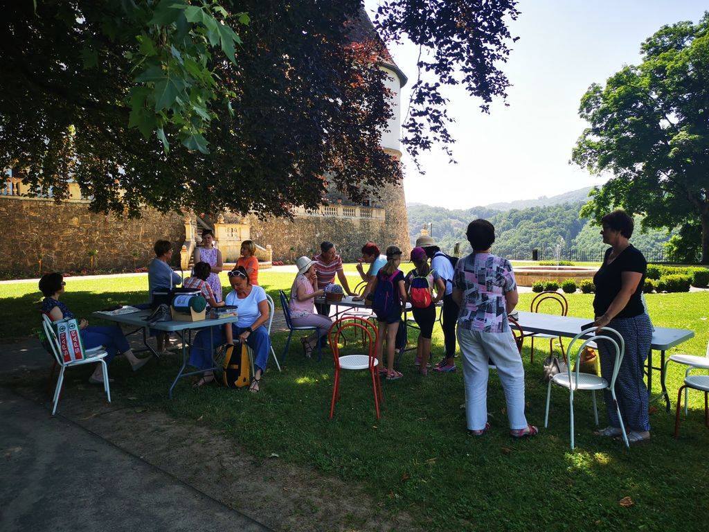 Po skoraj  letu in pol smo se članice Klekljarske skupine Bucike iz Sevnice podružile v prekrasnem ambientu grajskega parka. Vesele in zadovoljne, da smo lahko zopet skupaj, da si povemo novice, pokažemo kaj smo ustvarjale in da si zadamo nove cilje, ki nam jih nikoli na zmanjka.