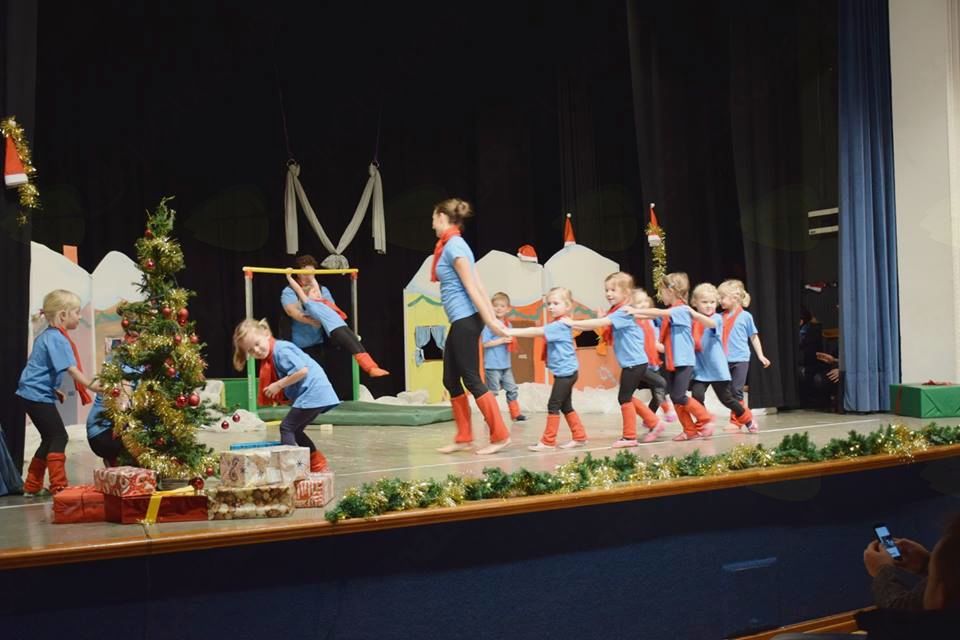 Decembra lani smo se telovadke in telovadci Športnega društva Partizan Sevnica predstavili z avtorsko plesno akrobatsko, božično predstavo, ki je vsebovala zgodbo z naslovom Božični večer z varuško Olgico. Nastopali smo vsi, od najmlajšega dveletnega Iana do starejših, skoraj trideset let starih telovadk. Vseh sodelujočih je bilo okoli 70.