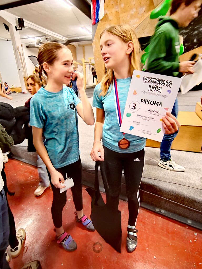 Na 1. tekmi Vzhodne lige v balvanskem plezanju, ki je potekala v Klajmberju v Mariboru, so se mlade plezalke in plezalci odlično izkazali. Posebej velja čestitati Inji Žibret, ki je med mlajšimi cicibankami osvojila 2. mesto, ter Miji Brilej, ki je med starejšimi cicibankami stopila na 3. mesto.