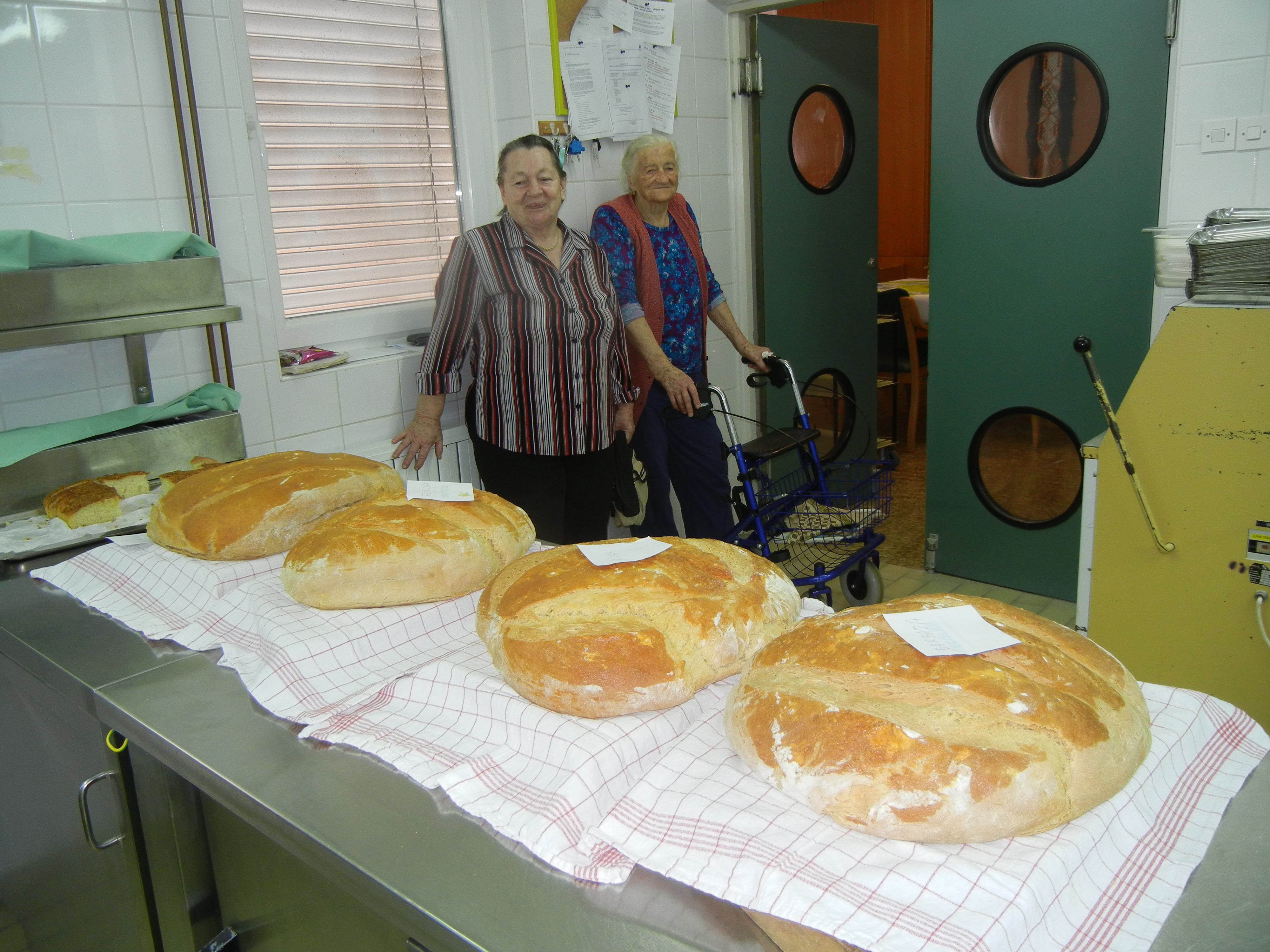 Četrtek 21. februar je bil v domu upokojencev Sevnica poseben dan. S stanovalci smo se dogovorili, da bomo sami spekli kruh za večerjo. Z veliko dobre volje osebja v kuhinji nam je to tudi uspelo. Stanovalke doma Barbara Murenc, Milka Špan in Terezija Felicijan so skupaj s socialno delavko zamesile kruh – tako kot so to delale doma. Ostali stanovalci so ob dobri malici ( puhli s pregreto smetano in ocvirki ) posedeli v jedilnici in »vzpodbujali« kruh, da je dobro vzhajal. Pogovarjali so se o kruhu, o žitih, o navadah pri peki,…Ko je zadišalo po svežem domačem kruhu so spomini kot valovi preplavili vsakega od prisotnih. Pred oči so prihajale podobe otroštva, domače krušne peči, matere, pa tudi težkih trenutkov vojne in izgnanstva, ko kruha ni bilo.
