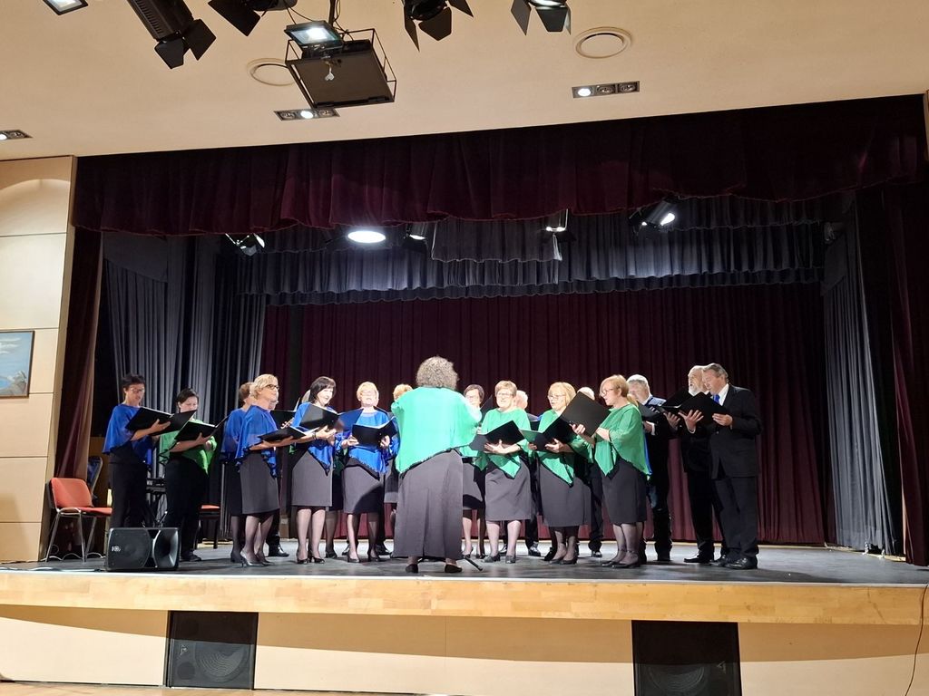 Koncert smo zaključili s skupno pesmijo obeh zborov. Le katera bi bila primernejša kot Avsenikova, že skoraj ponarodela, Slovenija, od kod lepote tvoje?