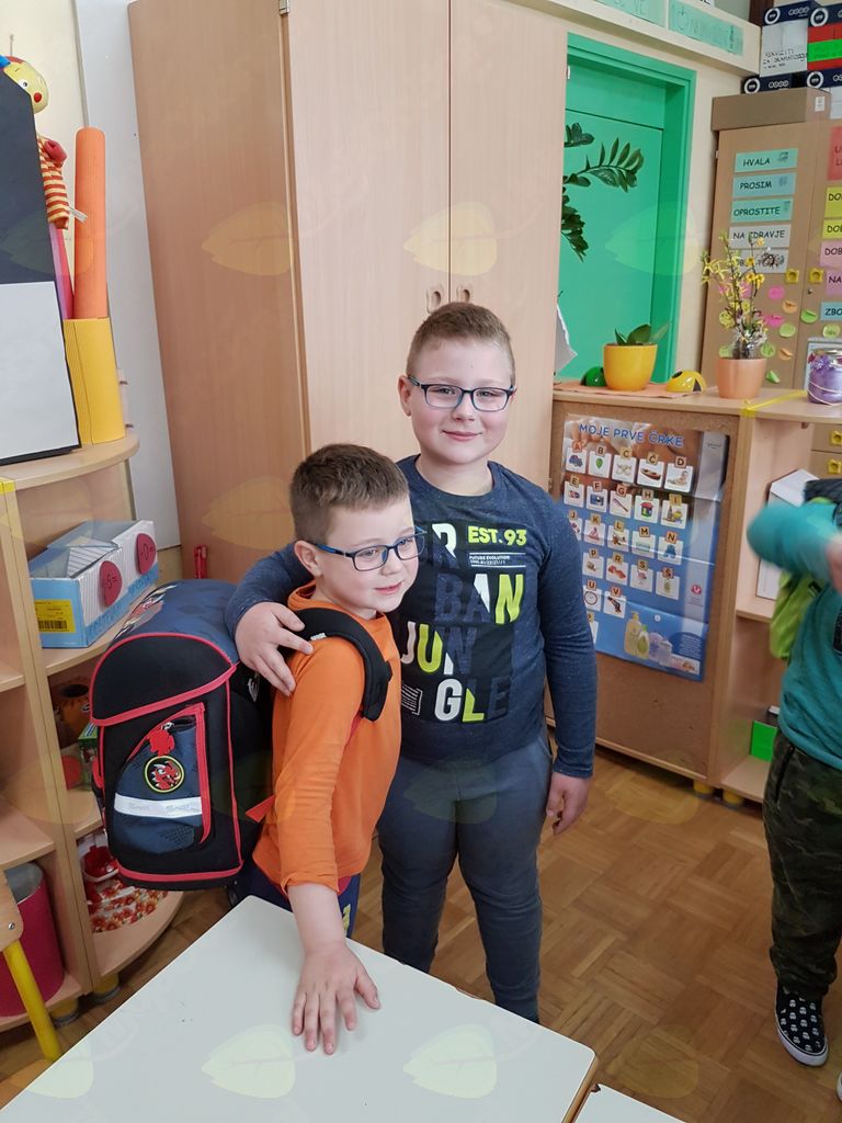 V teh dneh prvošolci OŠ Sava Kladnika Sevnica vsak dan dobimo obisk. Nadobudni vrtčevski otroci, ki bodo v jeseni prestopili prag šole in postali prvošolci, se nam vsak dan pridružijo pri pouku. Prvošolci z velikim veseljem bodočim prvošolcem pokažemo naše zvezke in delovne zvezke, "posodimo" šolsko torbo in z njimi izdelamo znak naše šole. Čas, namenjen skupnemu druženju, prehitro mine ob prijetnem klepetu. Marsikdo je ob druženju že stkal nove niti prijateljstva, zato komaj čakamo, da se bomo septembra vsakodnevno srečevali.