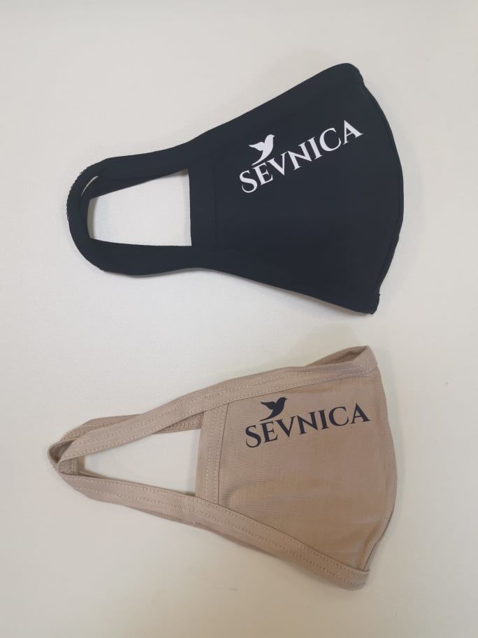 Ponujamo vam ženske in moške maske v dveh barvah ( temnomodri in bež), s potiskom logotipa destinacijske znamke občine Sevnica, po ceni 7,40 €/kos.