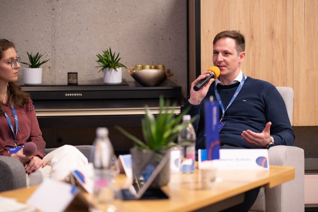 Konferenca je v prvem delu ponudila tri pogovore. Jure Grubar, Rok Koželj in Klemen Lisjak, pod vodstvom Ožbeja Peterleta, so razpravljali o »(Ne)uspešnosti prodaje modre frankinje« in kako jo izboljšati. Sledil je pogovor o njeni šibki prisotnosti na vinskih kartah restavracij: »Zakaj ni modre frankinje na slovenskih vinskih kartah?«, kjer so Simona Česen, Valentin Bufolin in Rok Kerin, pod moderiranjem Grega Repovža, izpostavili potrebo po boljši promociji. Zadnji pogovor je osvetlil položaj modre frankinje na svetovnem trgu: »Kako gre modri frankinji na svetovni sceni?«. Caroline Gilby MW in Dorli Muhr sta poudarili pomen proaktivnega pristopa vinarjev pri njeni promociji, gostitelj je bil Guillaume Antalick.