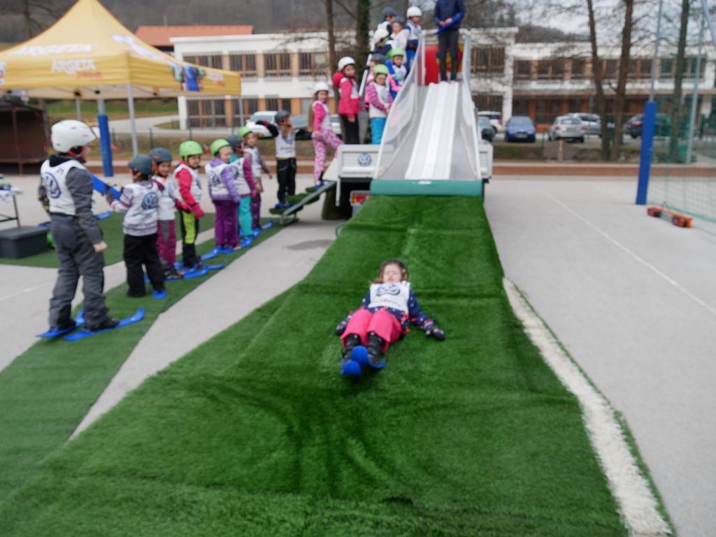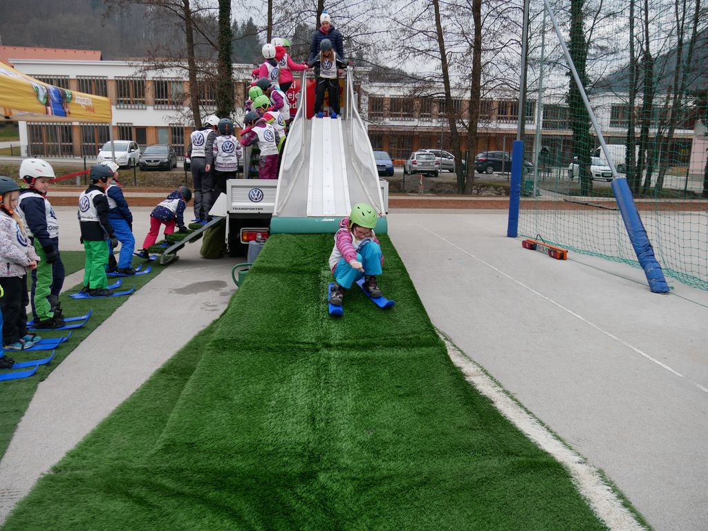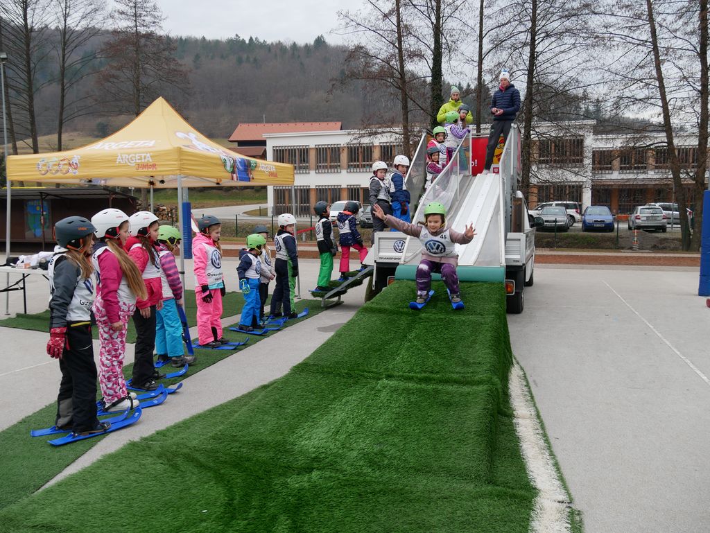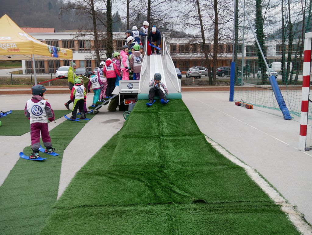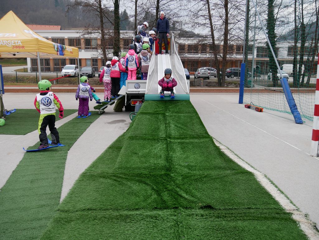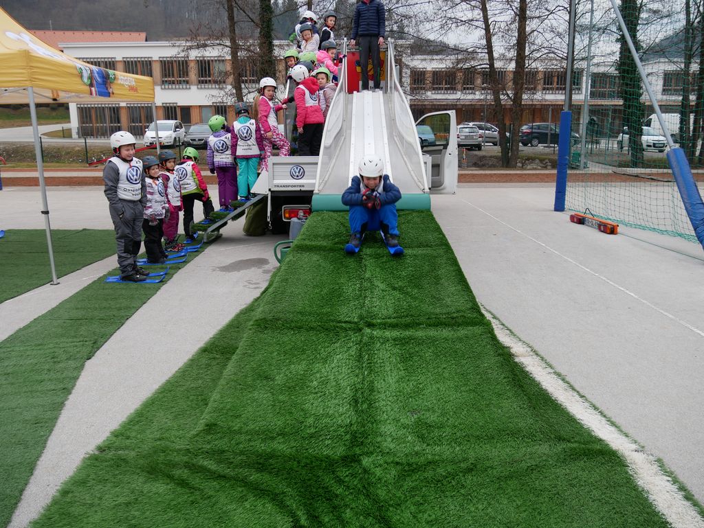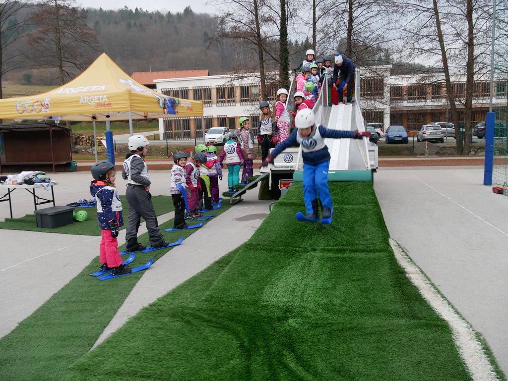 V torek, 26. februarja, smo na OŠ Tržišče izvedli zanimiv športni dan. Na obisku smo imeli skakalnico - Mini Planico. Čeprav nam letošnja zima ne omogoča zimskih radosti na snegu, so se učenci lahko preizkusili v skokih na mobilni skakalnici. Izvajalci so skakalnico postavili na šolskem igrišču in s seboj pripeljali vso potrebno športno opremo za skakalce. Pred pričetkom so dobili navodila, nato pa so se spustili po strmini in izvedli smučarske skoke. Čeprav je marsikdo pristal na zadnji plati, so učenci uživali in tako pridobili prve izkušnje in občutke ob smučarskih skokih.