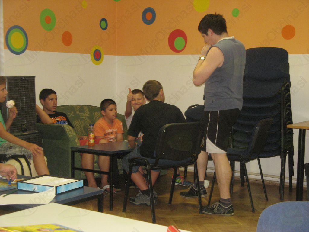 V MC smo poskrbeli, da nikomur ni dolgčas in za vsakogar se najde dejavnost s katero si lahko popestrimo jutranje ure. Vsak dan ustvarjamo nove umetnine in vzpodbujamo kreativnost z likovnimi delavnicami in izdelovanjem umetnin s perlicami, prepletanjem vrvic...., zabavamo se z različnimi družabnimi igrami prav tako pa so na voljo tudi športne igre, kot so ročni nogomet, namizni tenis, pikado, badminton in igre z žogo, ker pa ni priporočeno izvajati nekatere športne igre v notranjih prostorih mladinskega centra ob interesu otrok obiščemo bližnje šolsko igrišče, prav tako pa si včasih ogledamo kakšen film ali risanko. Zahvaljujemo se DI Zaupanje, saj brez animatorjev, ki so dnevno na voljo otrokom, ne bi mogli realizirat toliko različnih želja otrok. Skratka imamo se super, zato vas vabimo, da se nam pridružite.
