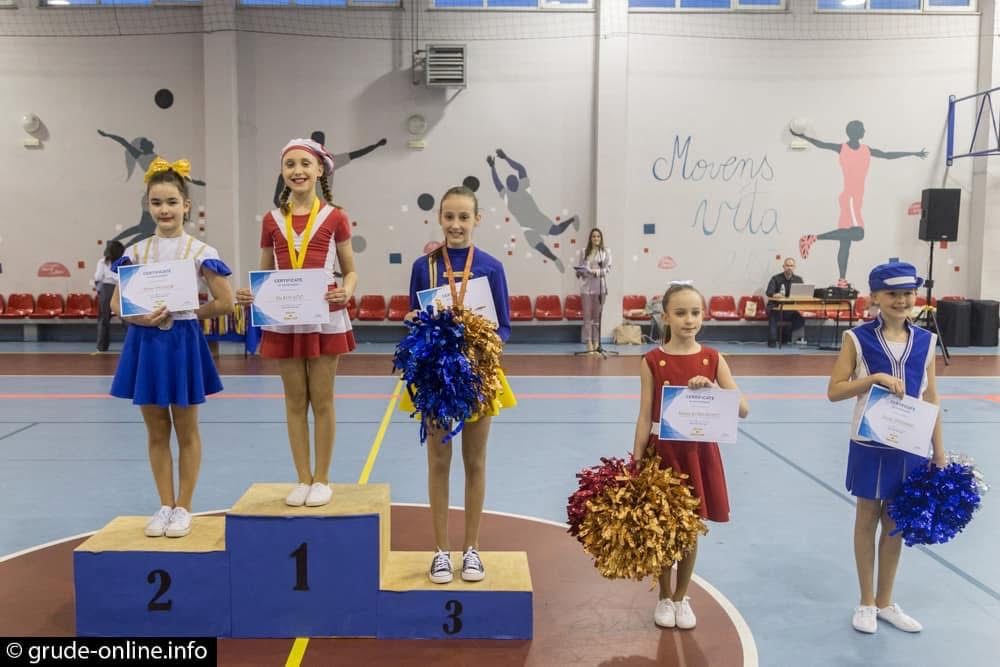 V soboto zjutraj smo se po zajtrku odpravili na prizorišče tekmovanja. Napetost je naraščala, saj je bila konkurenca zelo močna, a naša dekleta so kljub temu prikazala izjemne nastope. V kategoriji duo kadet – palica sta Žana Župevc in Klara Povodnik navdušili s svojo točko in Sevnici priplesali odlično 1. mesto. V kategoriji duo junior – pom pon sta se z 2. mestom izkazali Julija Žnideršič in Aresteja Špec, medtem ko sta Ula Koritnik in Julija Zupanec v isti kategoriji osvojili 4. mesto.