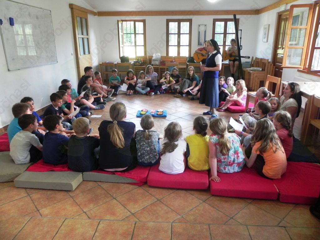 V nedeljo so otroci že težko pričakovali starše, ki so se nam pridružili že dopoldne, deležni so bili krajšega predavanja, nato pa se udeležili skupne svete maše. Pred kosilom pa smo tudi na starših preizkusili šaljive igre, nad katerimi so bili navdušeni prvoobhajanci v sobotnem v »veselem večeru«.