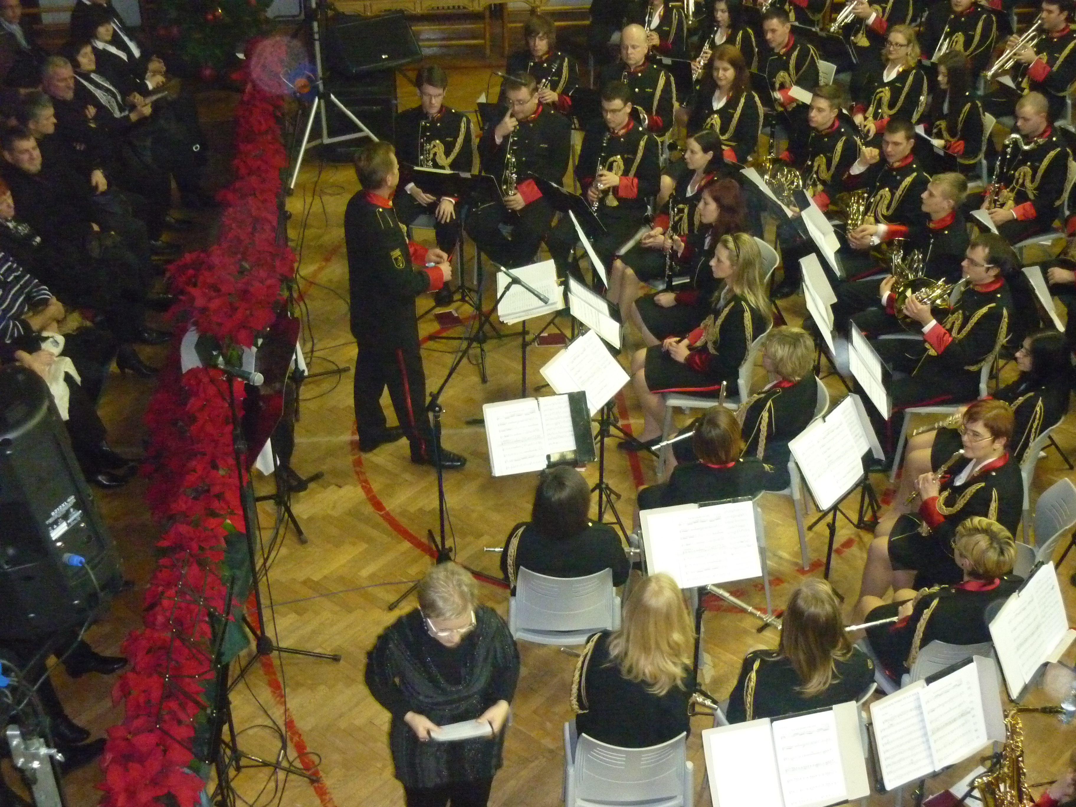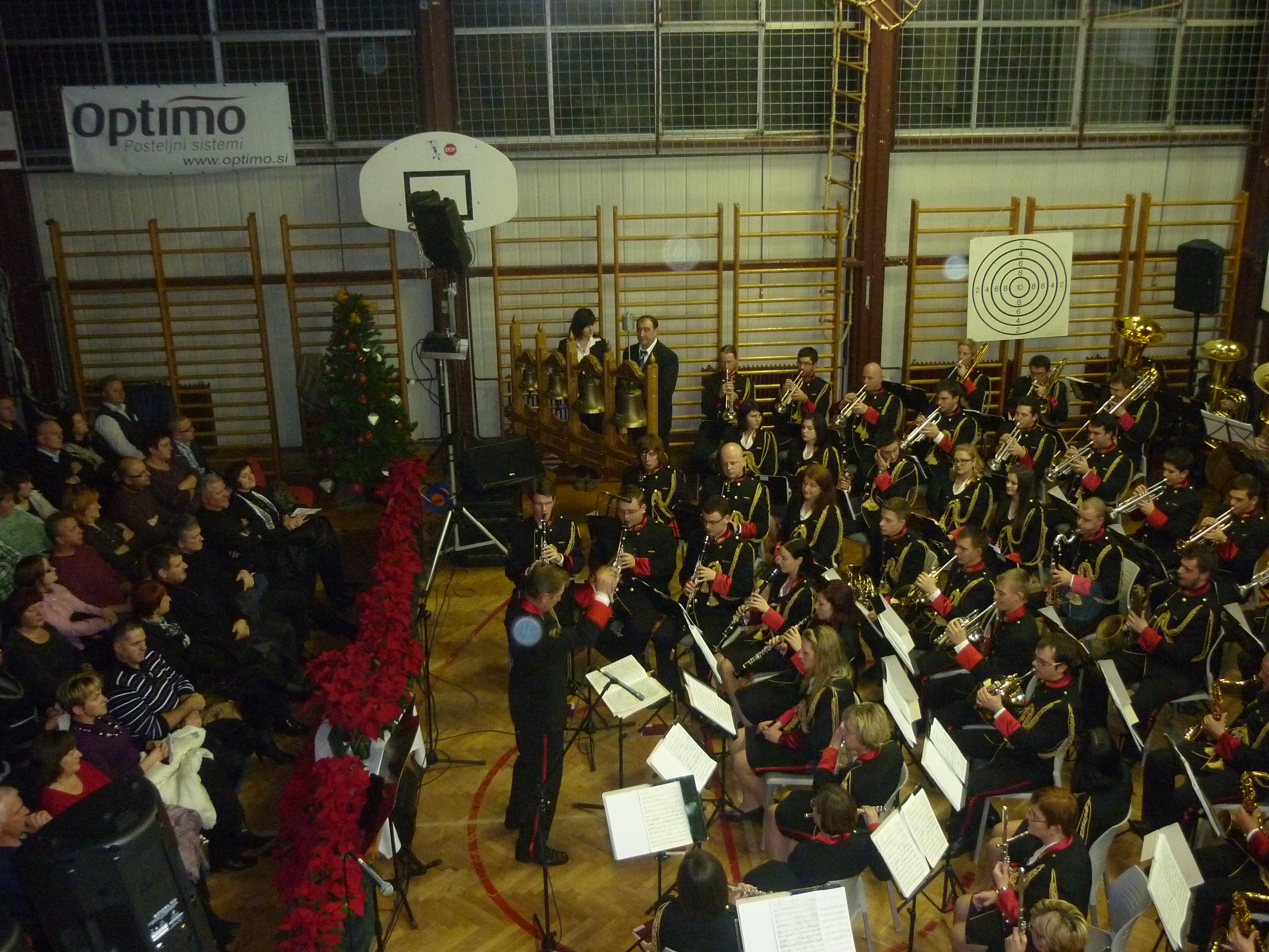 Godba Slovenskih železnic iz Zidanega Mosta pod taktirko Franca Lipovška je z Uverturo 1812 in domačima pritrkovalcema, Stanetom in Barbaro Erman, začela tradicionalni božično-novoletni koncert. Z dvema pesmima se nam je predstavil OMPZ Kresnica. Godbeniki so nadaljevali koncert s skladbo III. stavka iz suite za klarinet v izvedbi solista Jurija Martinčiča. Da je bilo vse še nekoliko konjeniško, so solisti Sergej Sumrak, Rok Pelc in Rok Turnšek odigrali skladbo Galop za tri trobente. Za tem sta bili na vrsti skladbi Rezervistova uspavanka iz Suite v solistični izvedbi Nejca Zahrastnika ter Cik-cak za ksilofon, ki jo je več kot odlično izvajal Ernest Kramar.