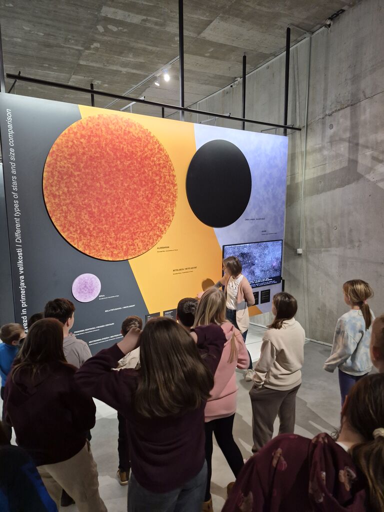 Najprej smo si ogledali razstavni del centra, kjer smo spoznali zgodovino astronomije, zgradbo osončja, zgradbo vesolja, satelite in življenje v vesolju. Ogledali smo si filmček o življenju na Mednarodni vesoljski postaji, ki ga je posnela ameriška astronavtka slovenskih korenin Sunita Williams.