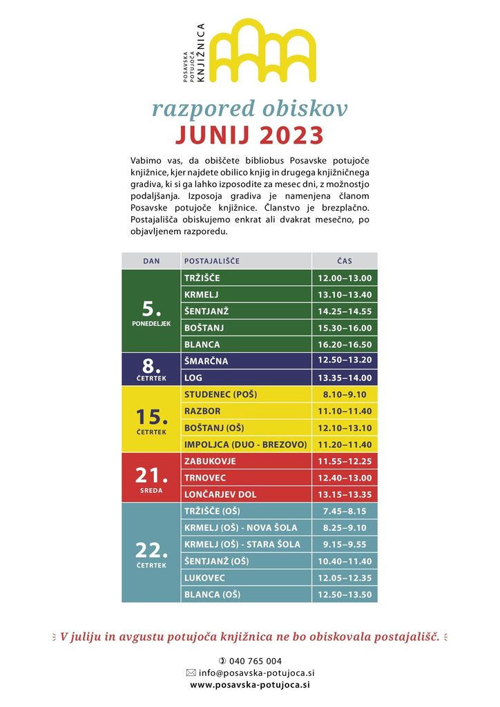 Bralkovi obiski postajališč v sevniški občini za mesec junij pred poletnim počitkom.