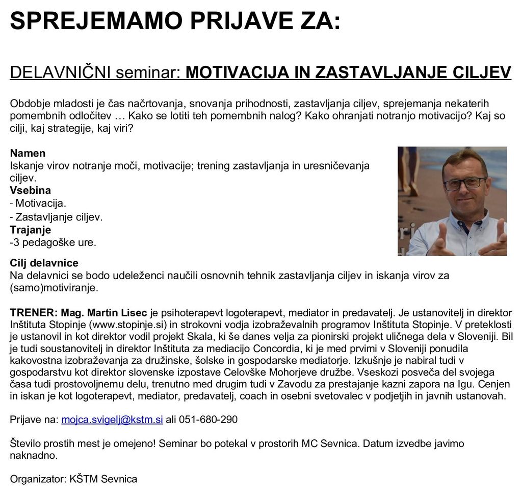 Sprejemamo prijave za seminar: Motivacija in zastavljanje ciljev