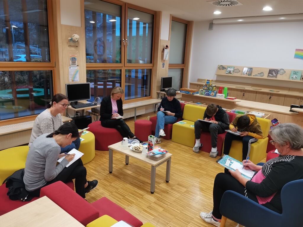 V torek, 21. oktobra 2025, smo se v šolski knjižnici OŠ Tržišče srečali na prvi bralni čajanki nove sezone, kjer smo v prijetnem vzdušju začeli jesensko druženje ob knjigi. Še preden smo jo odprli, smo se posvetili ustvarjalnemu delu – na liste štiriperesnih deteljic smo zapisali svoje misli o pojmovanju družine. Nekateri smo jo opisali kot varen pristan, drugi kot skupnost, kjer si vedno sprejet. Vsi pa smo menili, da ima najpomembnejšo vlogo v našem življenju.