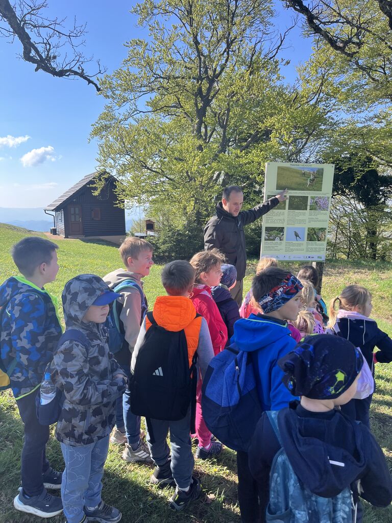 V sredo, 22. aprila 2026, so se učenke in učenci od 1. do 6. razreda Osnovne šole Krmelj ter njihovi razredniki in spremljevalci udeležili dneva odprtih vrat na gozdnih učnih poteh, ki ga je ob svetovnem dnevu Zemlje organiziral Zavod za gozdove Slovenije. Dogodek je potekal v prijetnem naravnem okolju na Jurkovi učni poti na Lisco, kjer smo lahko na poseben način doživeli gozd in njegovo bogastvo.