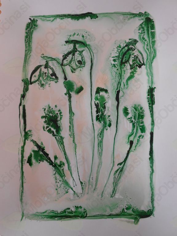 Čeprav se letos zima ne želi posloviti, so vseeno že zacvetele prve rožice. Učiteljica v podaljšanem bivanju se je odločila, da s cvetlicami okrasimo razred. Najprej smo s svinčnikom skicirali cvetlico, vsakdo se je odločil po svoji želji. Nato smo s posebnim lepilom – drevesno smolo s pomočjo čopiča prekrili risalni list. Z ostrim držalom, ki smo ga namakali v zeleni tuš, smo izrisali rožice. Lepilo je naredilo posebne efekte. Ko so se risbe posušile, smo jih razstavili. Z izdelki smo bili zelo zadovoljni.