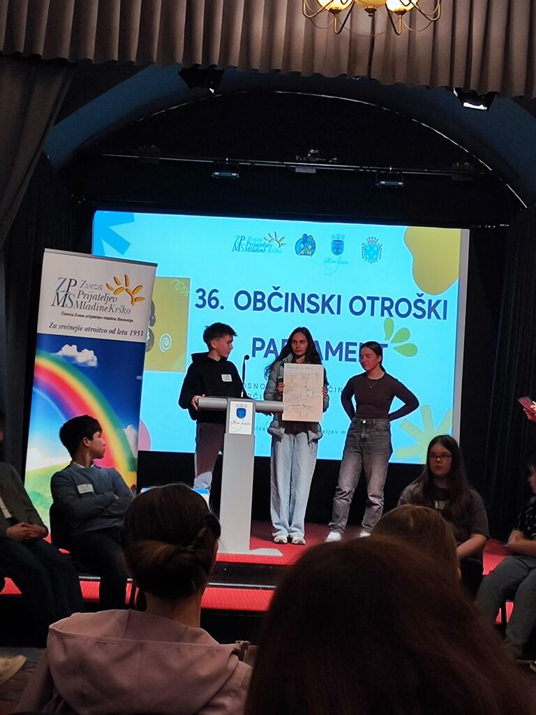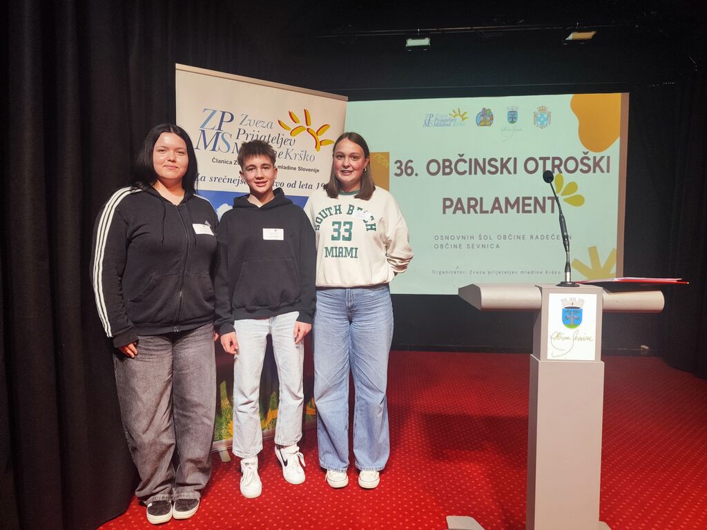 V ponedeljek, 9. marca 2026, smo se trije učenci OŠ Tržišče Maša Kramar, Neža Železnik in Aleks Imperl pod vodstvom mentorice Lucije Umek udeležili 36. otroškega občinskega parlamenta. Dogajanje se je odvijalo na sevniškem gradu. Sodelovali so predstavniki vseh šol v občinah Sevnica in Radeče. Po pozdravu gostiteljev in kratkem kulturnem programu Osnovne šole Milana Majcna Šentjanž, smo se razdelili v tri skupine in imeli vsak svojo delavnico. Po uri in petnajstih minutah smo se odpravili na malico. V nadaljevanju smo vsem udeležencem predstavili izdelke delavnic. Sledila je debata z voditeljico in predstavitev predstavnikov vsake šole. Na koncu pa smo izvedli čisto prave volitve. Izmed predstavnikov šol smo izvolili dva, ki bosta glas učencev občin Sevnica in Radeče zastopala na državnem otroškem parlamentu v Ljubljani. Poleg mene je to Vid Šribar iz OŠ Krmelj