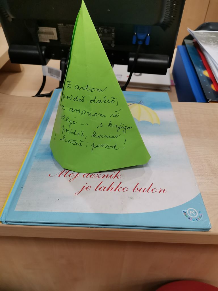 Posamezniki, ki gojimo veselje do branja, smo se v torek, 25. oktobra 2022, srečali v knjižnici OŠ Tržišče, kjer je potekala bralna čajanka. Naše prvo srečanje je bilo sprva polno pričakovanj in zanimanja, saj se je takšen dogodek odvijal na šoli prvič, a zagotovo ne zadnjič. Čeprav je bila skupina starostno raznolika, saj smo jo sestavljali tako najmlajši nadobudni bralci kot tudi starejši, se je bilo na začetku prav prijetno poigrati s sestavljanjem sličic, ki so napovedale temo bralne čajanke. Ker v letošnjem letu obeležujemo 100. obletnico rojstva pisateljice Ele Peroci, smo tokratno srečanje namenili njej in njenim otroškim slikanicam. V ospredje našega druženja smo izpostavili pravljico Moj dežnik je lahko balon in si zamislili, da lahko s svojim dežnikom poletimo v svoj želeni kraj. Tako smo ugotovili, da bi se nekateri z njim popeljali v oddaljene eksotične kraje, medtem ko bi se drugi zadovoljili z lepotami Slovenije. Izbrano pravljico smo glasno prebrali, se o njej pogovorili in si izdelali klobučke iz papirja, na katere smo zapisali prijetne misli. Ob tem se je porajalo, da za branje in poslušanje pravljic starost ni pomembna, saj smo v bralni skupini uživali prav vsi. Med deljenjem svojih vtisov in mnenj o branju smo popili čaj in se posladkali s piškoti, ena izmed udeleženk pa nam je zaupala tudi pravljico, ki ji jo je v otroštvu pripovedovala mama.