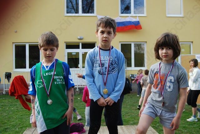 V četrtek, 11.4.2013, je naša šola že dvanajstič gostila občinsko tekmovanje v krosu za osnovnošolce. Sodelovali so učenci OŠ Blanca, Sevnica, Boštanj, Krmelj, Tržišče, Šentjanž in Radeče. Skupaj nas je bilo 247 tekmovalcev. Učenci od 1.-3. razreda so pretekli en krog po kros progi, od 4.-5. dva kroga, 6.-9. tri kroge, dečki 8. in 9. razreda pa štiri kroge. S štartom ob 10.30 so se na progo prve podale deklice 1. razreda, katerim so sledili dečki istega razreda in tako naprej. Okrog pol enih so tekmovanje zaključili dečki 9. razreda.