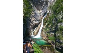 Po približno dveh urah vožnje je voznik ustavil avtobus malo naprej od Bohinjskega jezera. Po pešpoti smo se odpravili proti slapu Savica. S skalne police pada voda 78 metrov globoko. To je eden izmed dveh izvirov Save. Pogled na slap je bil prelep, zato smo posneli kar nekaj fotografij.