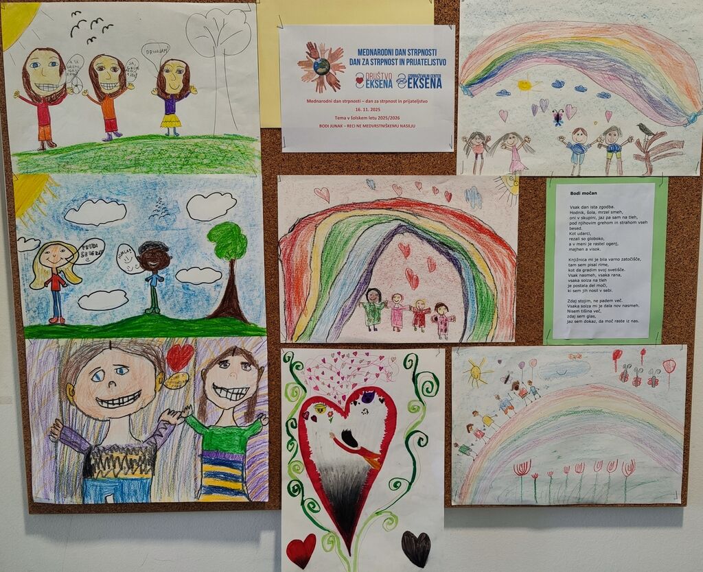 Na OŠ Milana Majcna Šentjanž in vrtcu pri šoli smo se v tednu od 17. do 21. 11. 2025 pridružili projektu MEDNARODNI DAN STRPNOSTI – DAN ZA STRPNOST IN PRIJATELJSTVO: BODI JUNAK – RECI NE MEDVRSTNIŠKEMU NASILJU v sodelovanju z avtorji iz Društva za strpne odnose Eksena in Izobraževalnega centra Eksena.