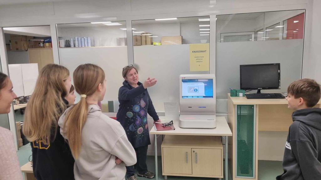 Prijazni knjižničarki sta nas toplo sprejeli ter nam predstavili delovanje knjižnice in njene oddelke. Spoznali smo knjigomat, ki omogoča samostojno izposojo knjig, kar nas je zelo navdušilo. Posebno zanimanje je vzbudila Knjižnica semen, kjer si člani Knjižnice lahko izposodijo različna semena. Prav tako smo bili presenečeni nad paketnikom, ki omogoča prevzem knjig tudi izven delovnega časa knjižnice.