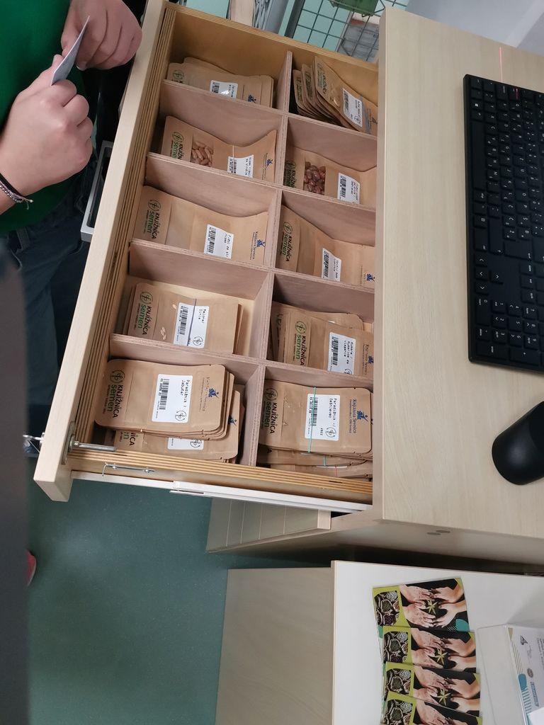 Prav vsi smo bili navdušeni, da si lahko med številnim gradivom izposodimo tudi različna semena. Če nimamo časa za obisk knjižnice, lahko prevzamemo knjige tudi v paketniku, medtem ko jih lahko vrnemo v knjigomat.