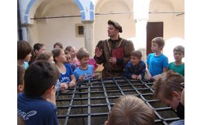 Na gradu nas je sprejela grajska gospa in nato smo se razdelili v dve skupini. Prva skupina je najprej odšla na ogled notranjosti gradu, druga skupina pa je pomalicala, se poigrala v parku in si ogledala film. Nato sta skupini zamenjali dejavnosti.