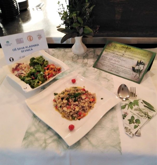 Letos je bila predpisana ješprenova / pirina rižota z dodatki po lastni izbiri in sestavljena solata. Ko smo končale s kuhanjem, je strokovna komisija ocenila pogrinjek, okus jedi, pravilen postopek priprave… Poskušali smo jedi, ki smo jih pripravile ostale ekipe in nestrpno čakale rezultate.