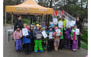 Matej: Dobili smo smučke, čelado in drese s številko. Smešno je bilo, ko so zalivali progo z vodo. Super se je bilo spustiti po skakalnici.